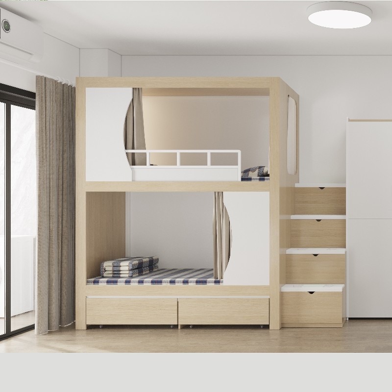 মাল্টিফাংশনাল একক ক্যাপসুল প্যাড টুইন লফ্ট স্কুল ছাত্রাবাস বেডরুম বিছানা সিঁড়ি ডেস্ক এবং নিচে স্লাইড সঙ্গে