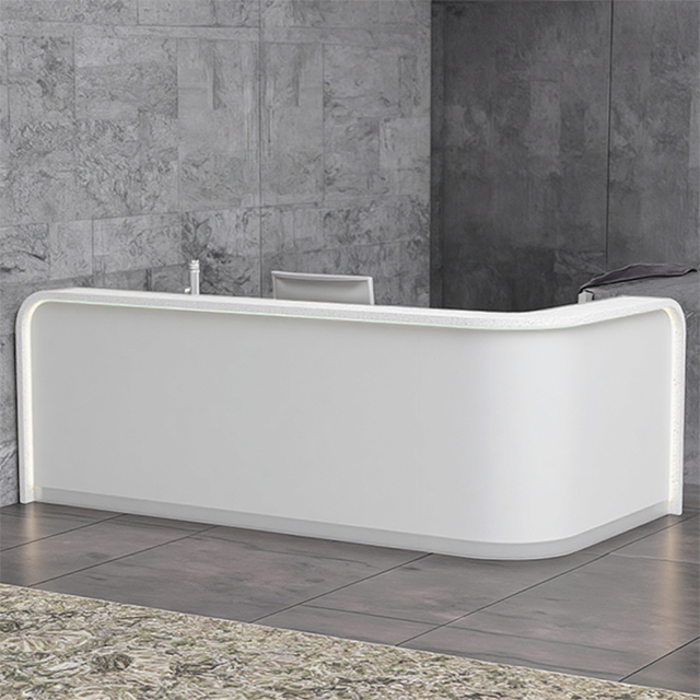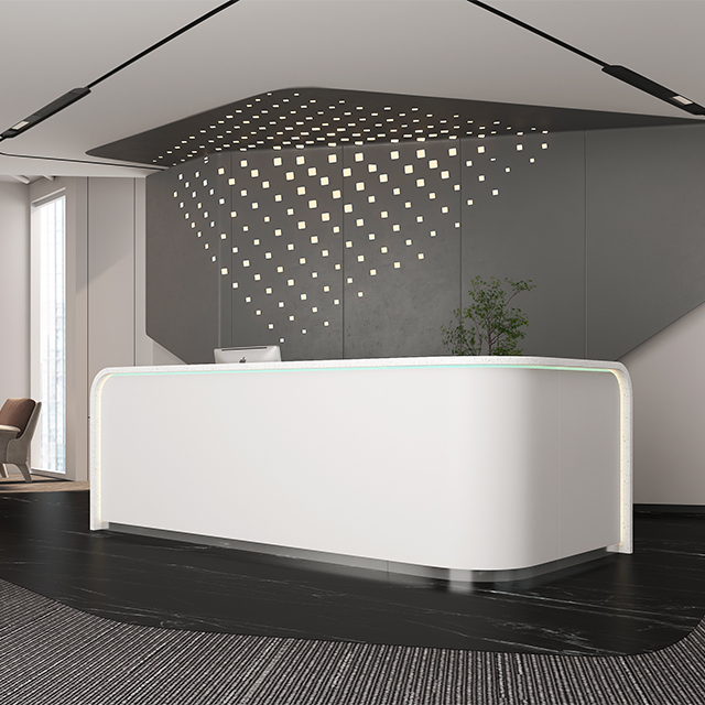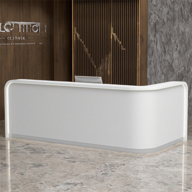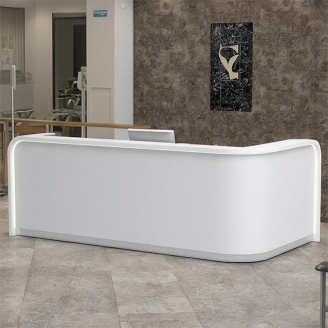 টেক্সচার্ড কৃত্রিম পাথর কাউন্টারটপ ফ্রন্ট ডেস্ক কোম্পানি হোটেল রিসেপশন ডেস্ক সার্ভিস ডেস্ক সাধারণ আধুনিক এবং আড়ম্বরপূর্ণ বাঁকা
