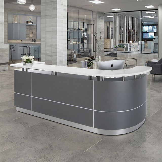 কৃত্রিম পাথরের কাউন্টার, ফ্রন্ট ডেস্ক পেইন্টিং প্রক্রিয়া, বাঁকা অভ্যর্থনা ডেস্ক, বেকিং পেইন্ট কাউন্টার কোম্পানি