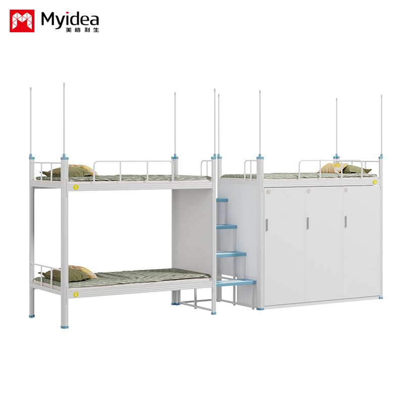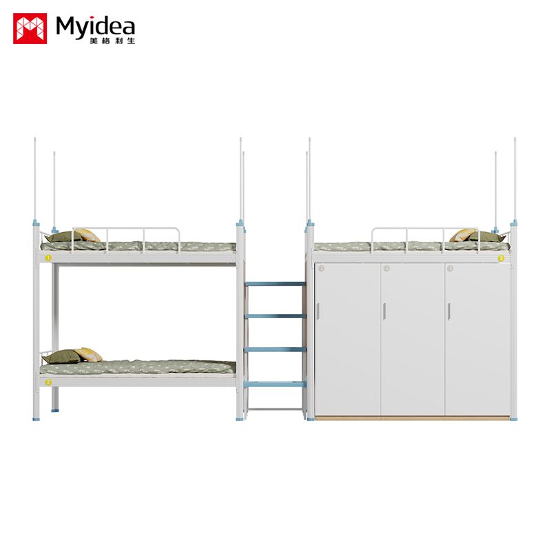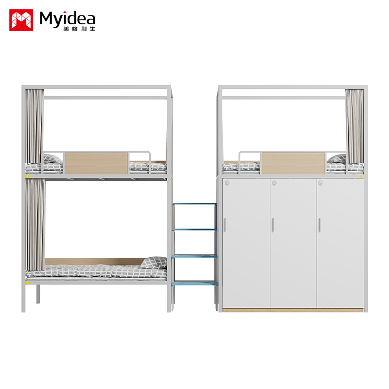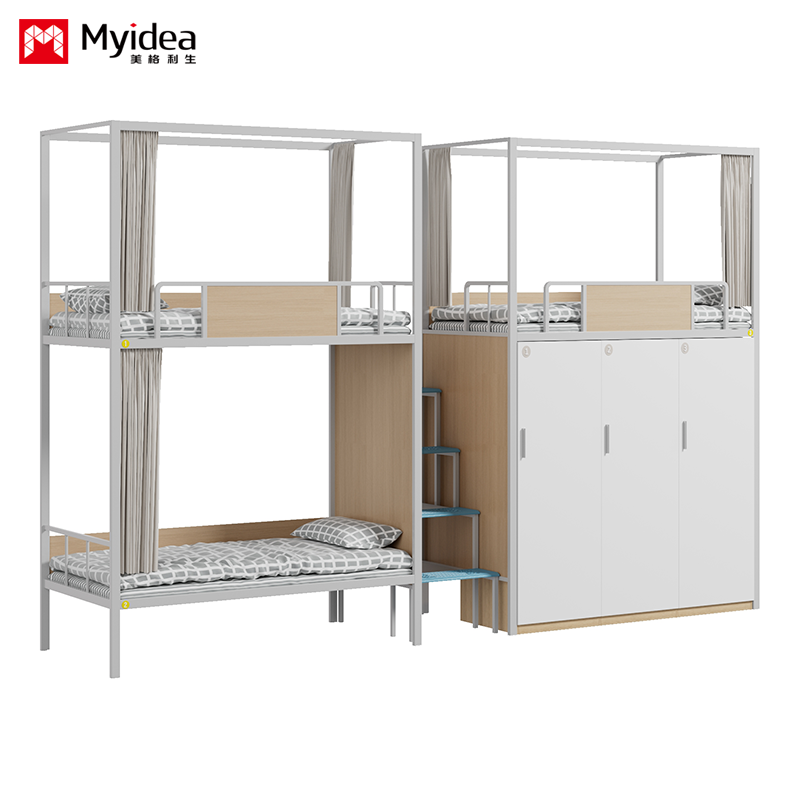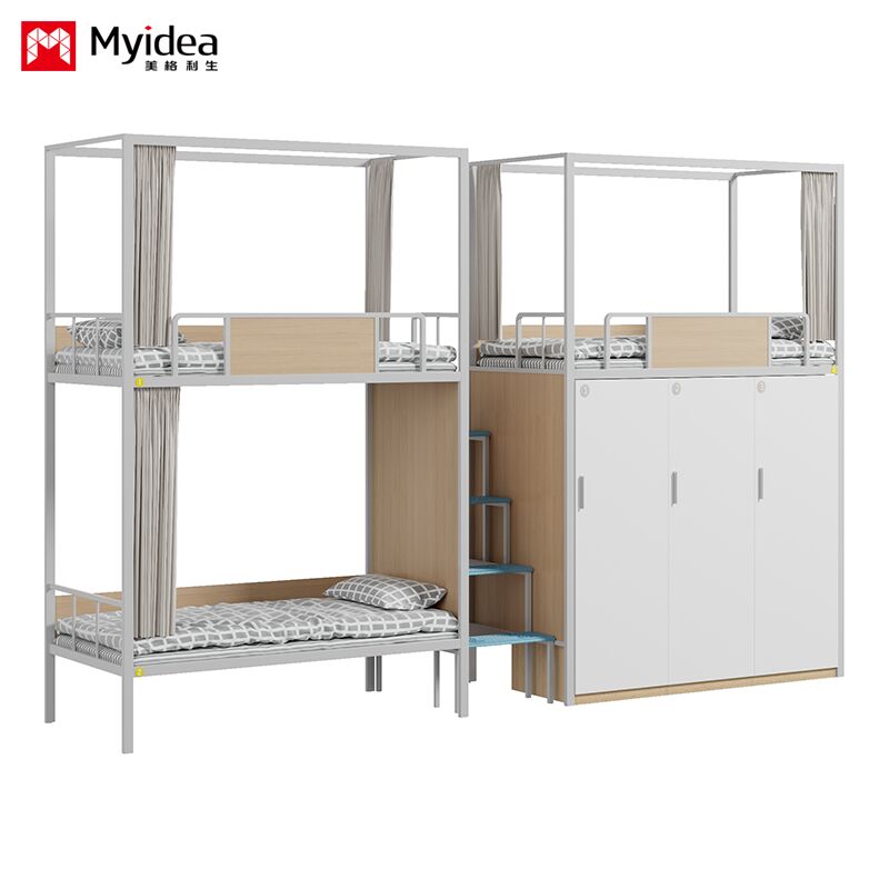 ডরমিটরি তিনজনের বিছানা আলমারি, সেফ নাইট লাইট স্টেপ ল্যাডার, হাই গার্ডরেল, বেড কার্টেন, স্কুল ডরমিটরি বেড