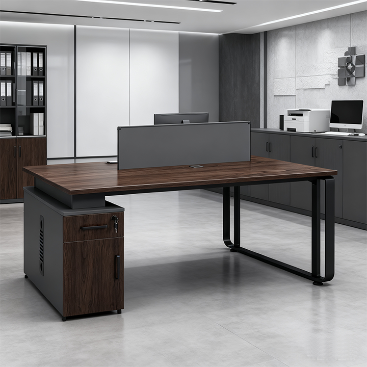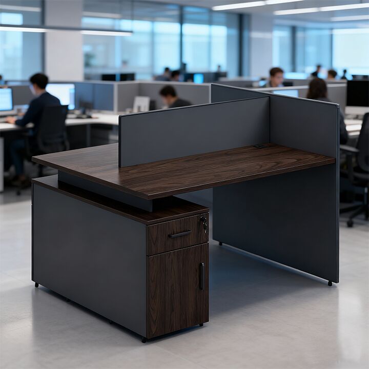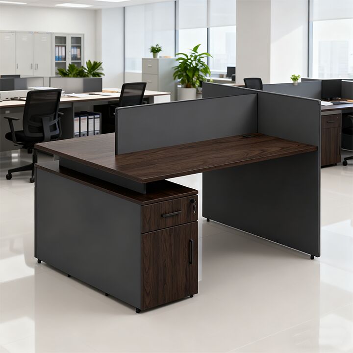 স্টোরেজ স্পেস সহ আধুনিক কাঠের ওয়ার্কস্টেশন ডেস্কগুলি একে অপরের মুখোমুখি স্বতন্ত্র নকশা সহজ সমাবেশ