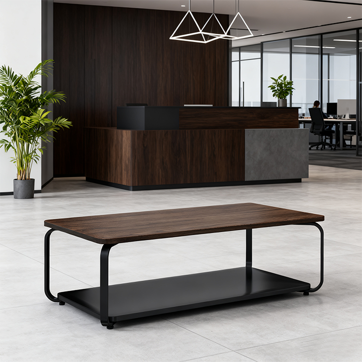 Simple Style Wood Coffee Table and Negotiation Table with Steel Feet and Plates Eco-Friendly Commercial Furniture manufacture