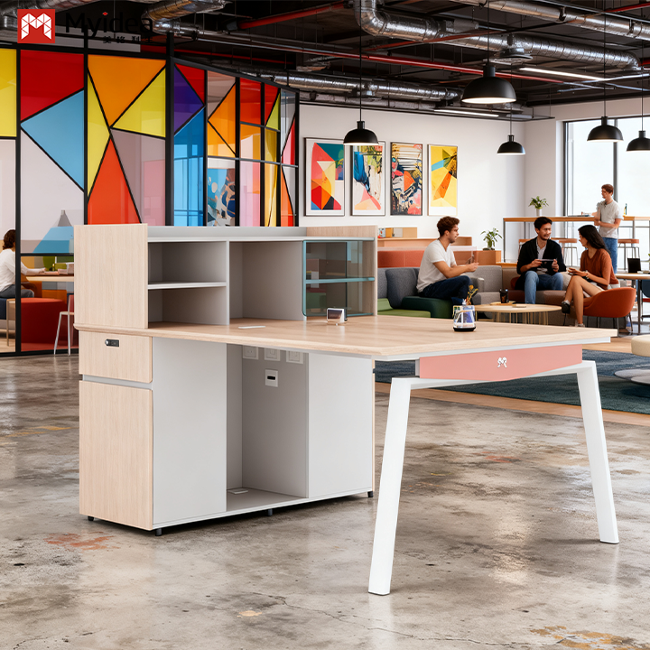 গ্লাস স্ক্রিন সহ আধুনিক সমসাময়িক স্টাফ ডেস্ক এবং বাণিজ্যিক ব্যবহারের জন্য পরিবেশ-বান্ধব অফিস আসবাবপত্র